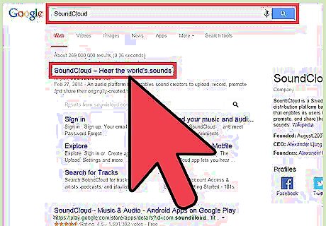 Visit SoundCloud. Open a new browser tab, type “SoundCloud” in the address bar at the top, and press Enter to search for it. SoundCloud should be at the top of the results; click it to go to its home page.
