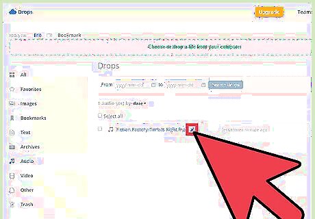 Upload an mp3. At the top of the page is a green bordered box that says, “Choose or drop a file from your computer.” Click on it to open a file navigator. Use it to browse your computer for the mp3 file you want to share to Facebook. Click the file, and it will be dropped in the Recent Drops list. Doing so will upload the desired file into your account.