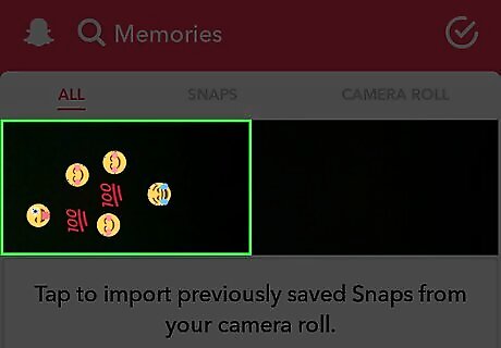 Swipe up to view your Memories. All of your saved Snaps and Stories appear here.