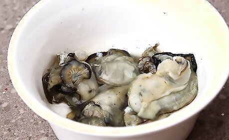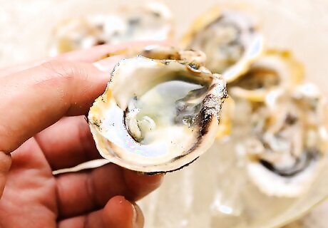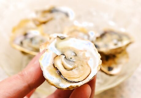 Choose fresh oysters. Oysters should still be alive when you shuck them; if they've already expired, they aren't safe to eat. Pick oysters with the following properties: Closed shells. If an oyster's shell is open, it's likely that it's already dead and should be discarded. Lightly tap the shell, just in case; if it immediately shuts, the oyster is still alive and fine to eat. A fresh sea smell. Fresh oysters smell both sweet and salty, like the air next to the sea. If an oyster smells fishy or "off," it's probably not fresh. A heavy feel. Place the oyster in your palm. If has a nice heavy weight, that means it's still full of seawater and was probably harvested quite recently. If it's unexpectedly light, the seawater has dried up, and it's no longer fresh.