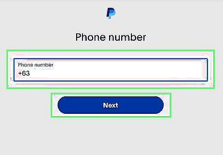 Enter your phone number and click Next. You must have a phone number to open a PayPal account; even if you don't have a physical phone, there are ways that you can purchase mobile data in order to get a phone number online.