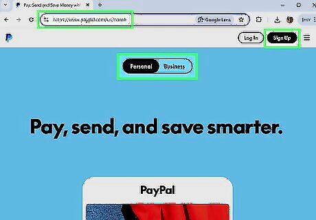 Go to https://www.paypal.com and click Sign Up. You can use any web browser, like Google Chrome, to create your PayPal account. If you'd prefer to use a mobile app on your Android, iPhone, or iPad, download the official PayPal app from the Apple App Store or Google Play Store.