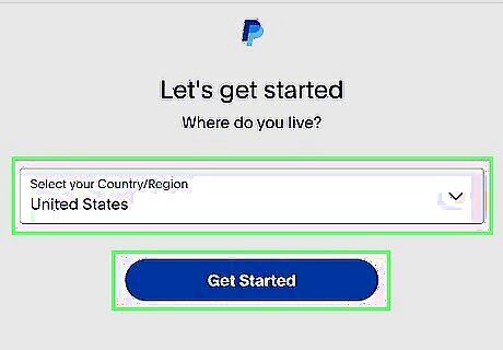 Select your country/region and click Get Started. Not every area is able to use PayPal. To see if your country or region can use PayPal, go to PayPal's global map to see if your area is listed. You can also find the PayPal's User Agreement for your area and look up restrictions as well as age limits for your country/region.
