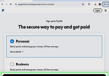 Choose an account type and click Continue. When signing up for PayPal, you'll have two account type options: Personal accounts are best for most people. They allow you to send and receive payments and shop wherever PayPal is accepted. To create a personal account, you'll need to provide your full name, address, and phone number, as well as email address. You'll be able to receive payments right away. If you want to send money or make payments, you'll need to link your bank account or credit/debit card. If you run a business and want to accept PayPal at the register or on your website, select Business Account. You'll need to provide all of the same information as you would with a personal account, as well as your business EIN or SSN. You can convert a personal account to a business account later, but you can't change a business account back to a personal account.