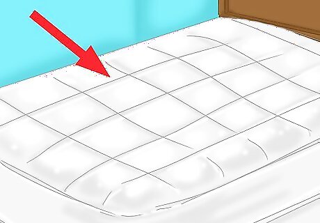 Ensure your mattress is comfortable and supportive. When you are sleeping on your back, it is essential that your mattress provides good full-body support, including lower back support. In a mattress, support is provided through the coils or inner springs. Different mattresses will have different arrangements and numbers of coils. As well, the padding of the mattress can come in different thicknesses, from seven to 18 inches deep. You should always try a mattress before buying it to ensure it is comfortable and supportive for your body. Often, a medium firm mattress is more comfortable as it allows your shoulders and hips to sink in slightly. If you have lower back pain, you may want to consider a firmer mattress with a padded cover for support. Check your existing mattress to make sure it does not sag at all or cause you any discomfort. If so, it may be time to invest in a new mattress. Though you can use boards underneath the mattress to help with the sagging, this is a temporary fix and you will eventually need to buy a new mattress to get a good night's sleep.