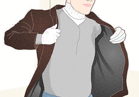 Dress in layers. Minimize the chance of frostbite or overheating by dressing in several layers of clothing, which can be removed or added as necessary. Begin with a snug layer of thermal long underwear, then put on at least two layers of clothing over both your torso and legs. The outermost layer should be waterproof. Bring a spare layer as well in case your clothing gets wet. Avoid cotton, especially next to your skin, as it takes a long time to dry. Synthetic materials and wool do a better job drawing moisture away from your skin, which keeps you warmer.