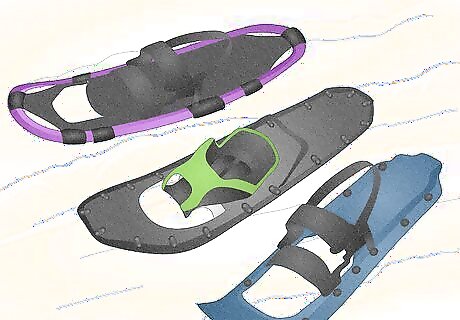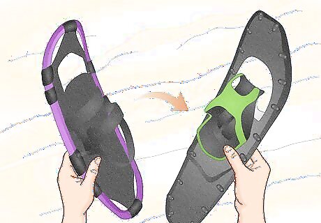 Choose between snowshoe sizes based on the snow type. You may find two or three sizes of snowshoe that are appropriate for your weight. If you often travel through deep, powdery snow, go with a larger size for more support. If you prefer to stick to flattened trails or hard packed snow, select the smaller size for greater maneuverability.