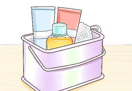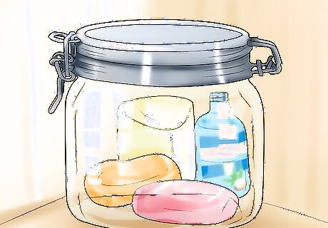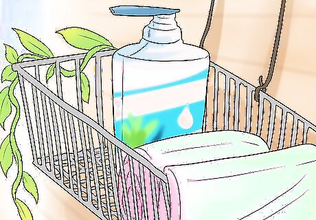 Straighten up for better presentation. Once you've decided what can go and what can stay, make sure it's all nicely configured and that no two items are clustered too closely together. Everything that's out should look like it has a purpose. The idea is to use your available space strategically to let the room breathe a little. Keep breakable objects away from ledges where they might be knocked over accidentally. Any products that are left out the countertops or in the shower area should have the labels turned outward so that they can be plainly seen. Consider transferring commonplace products like soaps, shaving supplies, and cotton swabs to more attractive containers, like nice jars or dishes.