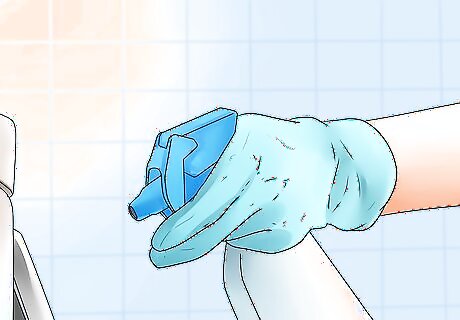 Clear off all visible surfaces. Empty your countertops, sink area, toilet tank and shower shelves completely. Not only will this make cleaning a breeze, it also helps to declutter the bathroom, giving it more of a “showroom” feel. You can return a select few items when it comes time to put the finishing touches on the room. Sort the items you remove into two separate piles: things you can get rid of and things you can hide until later.