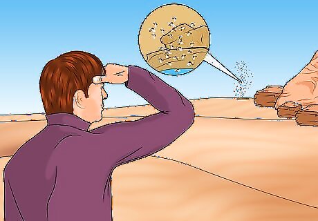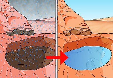 Look for water pockets after a rain. Water and wind can wear holes into stone, which then fill with water after a rain. Isolated rock outcrops and level surfaces are the best places to look for these. In shady canyons or valleys, these pockets can stay full for days after a rainstorm, sometimes for weeks in a cool, sheltered area.