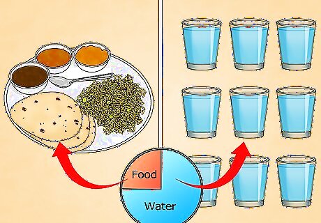 Eat less if you're running out of water. In an emergency, conserve water by eating as little as possible. You can survive much longer without food than water, and digestion takes water out of your system.