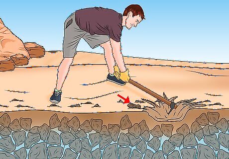 Dig at runoff points. These are sometimes difficult to identify without experience, but they're worth a try if you don't see anything else. The most promising features are slopes of hard, impenetrable rock, disappearing under the sand or soil.