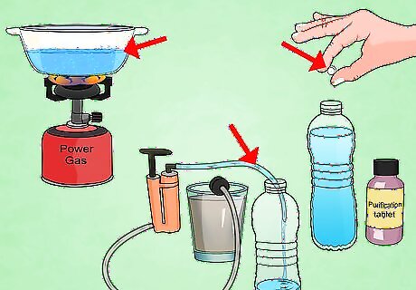Purify the water. Whenever possible, pour the water through a microfilter, or drop in purification tablets (such as iodine). That said, in an emergency, go ahead and drink it. Dehydration is more dangerous than waterborne disease, especially in a desert. Boiling water is even more effective, if you have access to a fire. All pathogens should be killed by the time the water reaches a boil, so no significant amount of water will be lost to steam.
