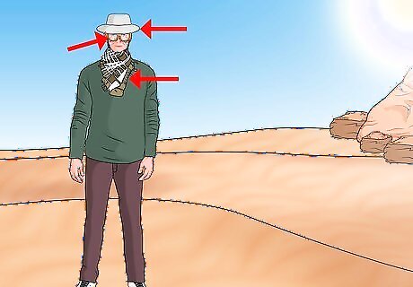 Stay covered. Any exposed skin encourages perspiration due to rapid evaporation. Wear a hat and lightweight, long-sleeved shirt and trousers.