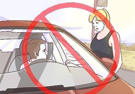 Do not approach drivers. Even if a driver slows down and pulls alongside you, asking for directions or trying to otherwise engage you in conversation, keep your distance. If someone wishes you harm or wants to take advantage of you when you are tired and vulnerable, they might, for instance, encourage you to come closer before pulling a weapon on you.