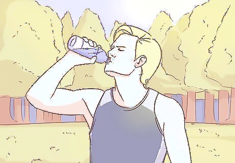 Stay hydrated. Drinking water before you run will protect you against heat cramps, heatstroke, and heat-related exhaustion when running (or doing any vigorous exercise). This is doubly important when exercising in hot weather. On exceptionally hot days, bring water with you. You could just clutch a water bottle as you run, or invest in a hands-free hydration system like the CamelBak. Signs of heat-related illness or overheating include nausea, dizziness, fatigue, and irregular heartbeat. If you experience these or any other unusual physical activity, stop your run and head home to rehydrate.