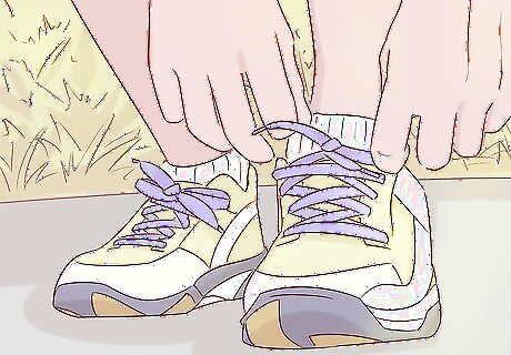 Wear supportive shoes. It is important you wear supportive, well-fitting shoes to avoid injury and pain from blisters and sore feet. Look for shoes with tread and breathable fabric. You can go to a sports store or a running store and the staff can help you choose the shoe that is best for your gait. Replace your running shoes every 300 to 500 miles or sooner. Over time, the padding will wear away, which will put added stress on your foot and ankle.