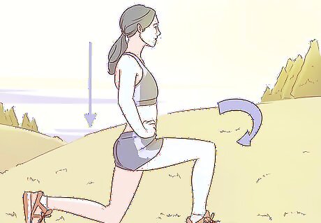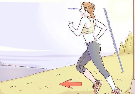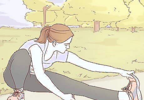 Warm up before running. While it was once thought doing static stretches before exercise could help prevent injury, this has shown to be incorrect, and it may even impede your performance. Instead, focus on warming up with a walk, which warms up the muscles you will actually be using while you run, and include some dynamic stretches. A dynamic stretch might be to rotate your hips clockwise for 10 seconds, then switch direction and rotate counterclockwise for 10 seconds. Try warming up with some lunges, doing eight to 10 on each side. Swing each leg forward and backwards as if it’s on a pendulum 10 times. Try jogging backwards a few steps, or do some high knees and kickbacks.