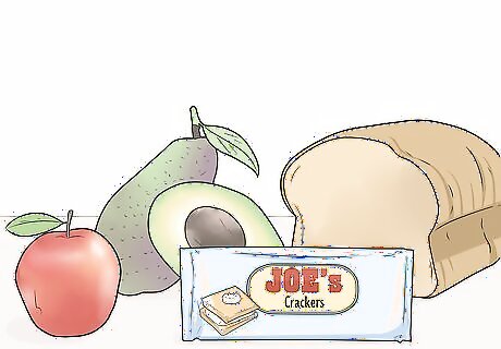 Stock up on snacks to eat during the night. Since you are staying up for the entire night, you will probably get hungry at some point. Bring some snacks into your room to eat throughout the night. Avoid sugary snacks, since those can cause you to have a sugar crash and fall asleep. Fresh fruit, crackers, and trail mix are all filling snacks that don’t have too much sugar in them.