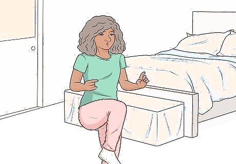 Avoid laying in your bed or getting too comfortable. Your bed might seem like a great place to sit and relax, but this can signal to your body that it is time to fall asleep. Stay away from your bed or laying on a super comfy couch until you actually want to fall asleep. Try to sit on a chair with a back instead. If you only have a bed to sit on, try putting some pillows on the floor to make a seat that is comfortable but won’t make you fall asleep.