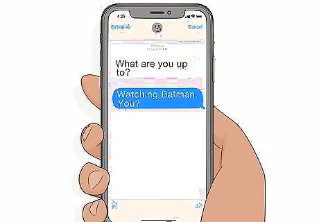 Talk to your friends by texting or video chatting with them. Even if you are not physically with your friends, it can be much more fun to stay up all night if you have someone to talk to. Text or video chat with your friends to see how long they can stay awake. You can even make a competition out of who can stay awake the longest. Make sure your phone volume is down low so you don’t wake anyone up with your ringtone.