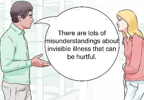 Use teachable moments. If someone says something insensitive to you, take the opportunity to gently correct them or educate them. For example, if someone says, “But you don’t look sick!” or, “Maybe you need to lose weight or get on an antidepressant,” it can be hurtful. While they may be trying to help, it can backfire and make you feel misunderstood. Focus on letting them know what you need or want to say. While these comments may anger you or frustrate you, take the high road. Say, “There are lots of misunderstandings about invisible illnesses that can be hurtful. It’s hurtful when you say that because even if my body looks fine, it doesn’t mean that I’m okay.” Say, “It’s easy to tell someone has a broken leg because they often have crutches and a cast. This helps others see that they need help such as with opening doors or getting around. For someone who has an invisible disability such as fibromyalgia, mental illness, or lupus, it’s much harder for people to know that they need help.” If someone continues to be disrespectful about your condition, know that you can distance yourself from them or even terminate the relationship. It may also be helpful to set boundaries and say something like, "It's hurtful when you make comments about my illness not being 'real.' Please keep your opinions on my illness to yourself. If you say something like that again, I don't think we can continue to be friends."