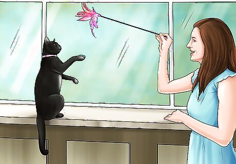Engage in regular interactive play with your cat. Your cat might be turning on faucets or drinking from the toilet as a source of entertainment. You can distract your cat from these activities by making sure they are stimulated through interactive play every day. Try playing games with a laser, wand toy, or bubbles. You can also engage your cat with balls and feather toys they can chase.