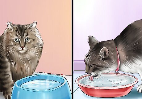 Give your cat fresh, cold water twice daily. Sometimes cats drink from places like sinks and toilets because they find the water in their bowl unappealing. If you leave your cat’s water sitting out for days, debris can accumulate in the bowl and the water will turn to an unappealing room temperature. Give your cat a bowl of cold fresh water every morning and every evening.