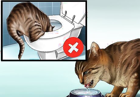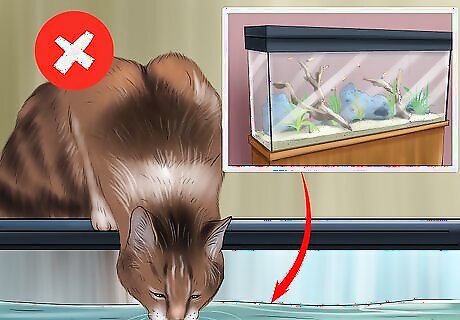 Prevent access to problematic water sources. If your cat is drinking from a problematic water source like a fish tank, bathtub, or shower, you can stop this behavior by closing the cat off from these sources. If your cat is drinking from the toilet, for example, make sure the toilet lid is always closed. If your cat is drinking from the fish aquarium, keep the door to that room closed.