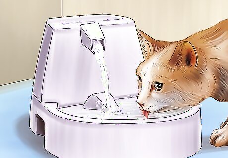 Give your cat a pet fountain. One way to discourage your cat from drinking out of odd places is to provide them with a pet fountain. A pet fountain will give your cat the running water it enjoys. It will also encourage the cat to drink more water. You can purchase a pet fountain at any pet supply store for about $30-50 USD. Try placing the pet fountain in the room where you feed your cat or where the cat tends to spend the most time. Placing the pet fountain on a hard floor surface like tile or linoleum will make cleanup easier if your cat splashes in the fountain.