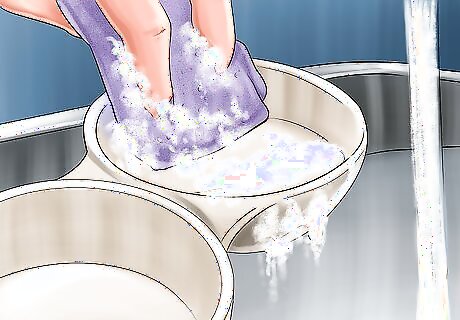Place water bowls in multiple places. Sometimes your cat will be more likely to drink from their water bowl if there are several options. Try leaving two or three different water bowls in several places around the house. Make sure you wash and refill these bowls twice a day.