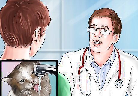 Talk to your vet. Your cat could be drinking from odd places because of extreme thirst. Underlying medical conditions, low protein diets, and certain medications can cause your cat to become abnormally thirsty. Make an appointment with your vet to make sure your cat's thirst is not related to another issue. Try to get an idea of how much water your cat usually typically drinks and how much it is drinking now. Being able to tell your vet that your cat is drinking two or three times more than normal is more useful information than simply saying your cat is drinking a lot.