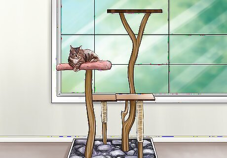 Create vertical space for your cat. Consider setting up a cat tree in your home. By creating more vertical space for your cat, you will give them opportunities to play and climb in the new space. You can try a simple cat tree, catwalk, or shelving that you install yourself. You can also purchase more elaborate spaces for your cat, like a floor to ceiling cat tree.