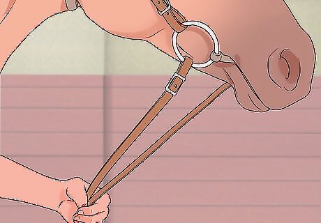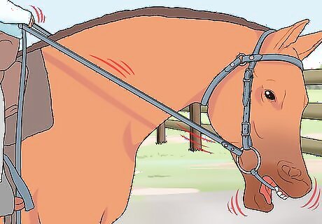 Check to see if the horse is rearing out of pain. A horse may rear in response to pressure on the reins if its bit is too harsh or is causing it pain. Make sure its bit is the proper size and fit in the horse's mouth to eliminate this potential cause of the rearing. You'll want to make sure that the rings or metal connections at the corners of the horse's mouth don't pinch its lip and that the center of the bit doesn't hit the roof of the horse's mouth. If you use a bare metal bit, consider switching to a rubber or plastic-coated mouthpiece, as these are more comfortable for horses. If a painful bit is what's causing your horse to rear, you'll probably notice the rearing behavior happening most often in response to you pulling on the reins. Your horse may also rear due to pain caused by an ill-fitting saddle. Have a professional check the fit of your saddle to determine if there is any pinching or unevenness in the areas where the saddle contacts your horse. Your vet can also help you check for saddle-related pain.