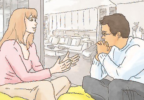 Cool off before you talk. Keep tabs on your feelings, and notice if you’re getting angry with your partner. If that happens, take a break and calm down before you address the problem. Breathe deeply or take a walk until you feel level-headed enough to handle a discussion without losing your cool. Don’t try to argue when you’re angry. You might say something hurtful that you’ll regret later. Be mindful of your triggers. Pay attention to how you feel physically. For example, you might note things like shallow breathing, tensed muscles, and a racing heart. If you do notice anything like this, take time to calm down before you talk with your partner.