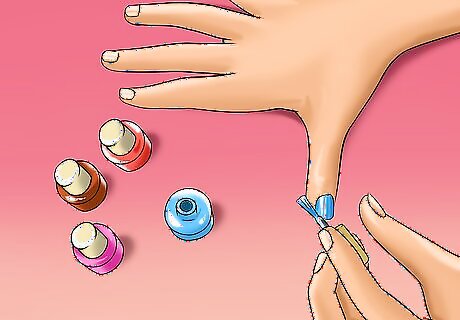 Cover your child’s nails. Your child will find it harder to bite their nails if they’re not easily accessible. Some good things to try are: Nail polish Fake nails Gloves Band-Aids Tape