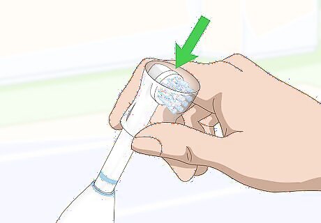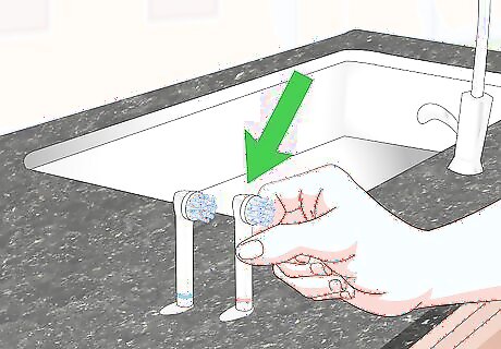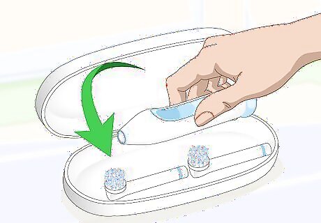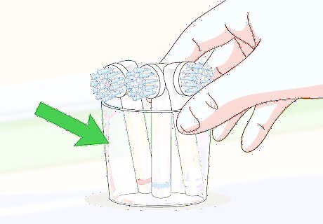 Buy a special electric toothbrush head stand for a simple choice. There are stands made specifically for electric toothbrush heads, by companies that sell electric toothbrushes. Find one at your local pharmacy or shop around online to find a good price. Unless multiple people in your household share the same electric toothbrush motor for their individual heads, you also have the option of just standing your electric toothbrush up on a flat surface between each use.
