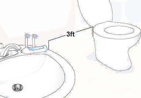 Keep your toothbrush head 3 feet (0.91 m) away from the toilet. There is an aerosol effect of germs spreading when a toilet is flushed. You want to keep your toothbrush as far away from these germs in the air as possible, especially if you don't close the toilet lid before every flush. If you have a small bathroom, consider keeping your toothbrush on a counter in the hallway or bedroom to keep it far enough away from the toilet.