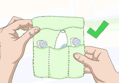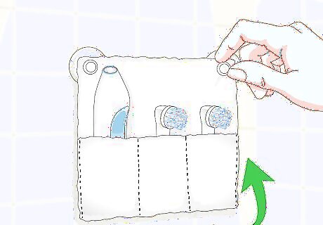 Make a vertical wall pocket from a towel to avoid using the counter. Fold a hand towel ¾ of the way from the bottom and sew the sides with your sewing machine. Create individual pockets by sewing a line straight up from the bottom, stopping at where the pocket would end. Attach a suction cup hook to each upper corner of the towel and attach your wall pockets to the wall with the suction cups.