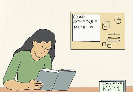 Review your syllabus. Figure out when all of your exams will be and how much of your grade they are worth. Put these dates on your calendar or planner so they don't sneak up on you! Plan review sessions beginning at least a week in advance of each exam. Ideally, you'll do several mini-reviews well in advance, gradually increase the time in which you study, rather than trying to cram everything into one mega session the night before the test.