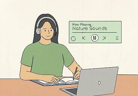 Decide if music is right for you. Music's effect on memory performance varies between individuals. Some studies have found music to aid the memory performance of individuals with ADD/ADHD, while reducing it in individuals without the disorder. Classical music appears to be the most effective in enhancing studying performance. You must determine whether you're better off with or without it. If you do enjoy listening to music whilst studying, make sure you're actually concentrating on the material you have to study for, and not the catchy tune that's playing in your head. If you absolutely must listen to music, find instrumental music so that the words in the music don't interfere with your studying. Listen to background sounds from nature in order to keep your brain active and prevent other noises to distract you. There are several free background noise generators available online. Listening to Mozart or classical music won't make you smarter or keep information in your brain, but it may make your brain more receptive to receiving information.