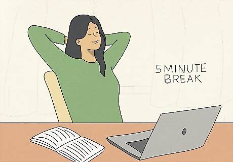 Get to the exam room with time to spare. Give yourself at least five or 10 minutes to gather your thoughts before starting the exam. This way, you can get settled in and have time to relax before the test starts.