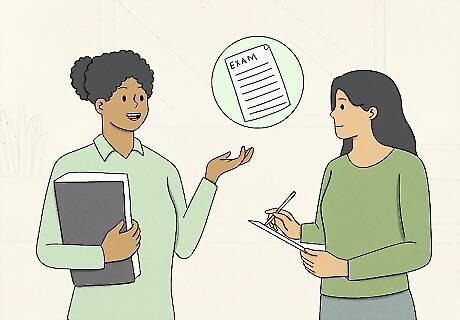Ask about the exam format. Ask your teacher what format the test will be in, how it will be graded, if there are any opportunities for extra credit, and if they would be willing to talk to you about highlighting in your notes, what the most important broad subjects will be, etc.