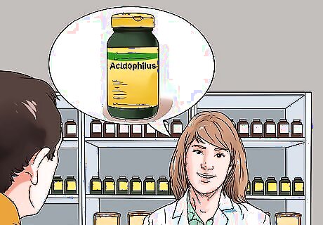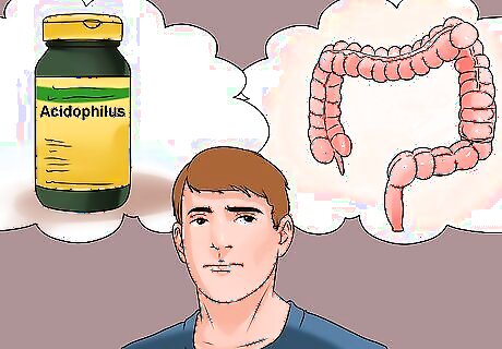 Treat irritable bowel syndrome (IBS). To treat your IBS, talk to your doctor about taking acidophilus probiotic for 6 weeks. Choose a probiotic supplement, such as Proviva or Lacteol Fort, that contains viable lyophilized bacteria species including lactobacillus, bifidobacteria, and streptococcus. This can be taken in a drink or capsule form. When you are buying one, make sure the supplement contains 10 billion CFU of lactobacillus acidophilus. You should take this supplement twice per day. Some people find it beneficial to take digestive enzymes along with probiotics to really heal the gut and provide help with digestion. Acidophilus bacteria colonizes in the large intestine. It can help to repair damage due to IBS and help control diarrhea and constipation. Taking acidophilus can cause additional gas or diarrhea for the first few days of treatment. The diarrhea should go away and your gas should be reduced after your body adjusts. See a doctor if you have diarrhea for more than 2 days and discontinue use of the supplement.