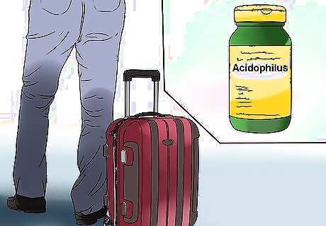Use acidophilus for traveler's diarrhea. Sometimes when you go on trips, you suffer from traveler's diarrhea. To help prevent this, choose an acidophilus brand that does not break down under normal temperatures, as most acidophilus does, and one that doesn't need to be refrigerated. This will make it easier to take with you when traveling. Take 2 billion CFU of a Lactobacillus GG supplement, such as Culturelle, for every day of travel to prevent traveler's diarrhea. Buy capsules that can easily be tucked away in your luggage.