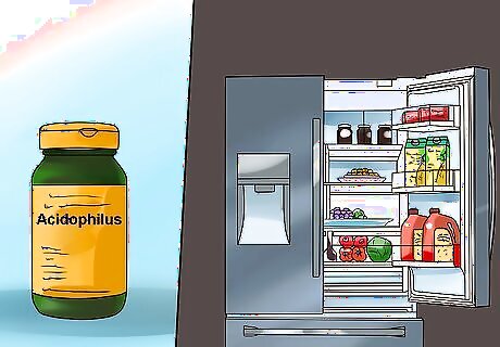 Buy probiotics from a reputable supplier. Purchase probiotic supplements from a reputable manufacturer that guarantees its products. Although probiotics are considered dietary supplements, the Food and Drug Administration (FDA) does not approve these products. They do, however, loosely regulate them. Although there are standards set for the manufacturing of dietary supplements and the FDA may periodically check the facilities, there is a chance that your dietary supplement does not actually contain what it claims to or is contaminated. Each acidophilus supplement should come with a Colony Forming Units (CFU) count guarantee, which is based on the count at the time of manufacturing. Most acidophilus supplements contain between 1 to 2 billion CFU. Do not purchase products without CFU count guarantees. If the brand of probiotics you purchase is sold refrigerated, then ensure that your bottle has been and continues to be kept cool.