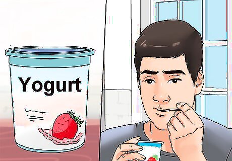 Eat acidophilus-rich foods. If you aren't interested in trying the milk, yogurt and soy products contain natural forms of acidophilus. When choosing yogurt for its probiotic value, look for yogurt that contains live l. acidophilus cultures and no added sugars. Some fresh fruits and vegetables, such as carrots, also contain acidophilus. Remember that while consuming foods high in probiotics is wonderful, we are unable to get enough of it from food alone. A supplement is always a great idea!