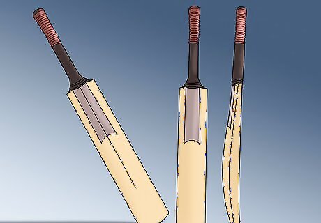 Beat the new cricket bat with a hardwood bat mallet. This will harden your bat. Hit hard enough to create a dent in the middle of the bat. Check to see if you did make a dent. Then gently knock the face of the bat around this dent to make it level. When done, you should no longer see the dent. Round off the edges. Hit with a 45 degree angle to the face. This allows the mallet to compress the willow. Start with one dent on the edge, then gently knock around it to remove it and smooth the edge out. In each case, repeatedly strike the face and edges of the bat whilst gradually increasing the force of the strike over time. Do not use the mallet on either the face or the bottom of the bat toe with the mallet.