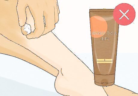 Avoid tanning and spray tans. There is not clear evidence that tanning will harm your baby, but using a tanning bed is the leading cause of skin cancer and should always be avoided. Tanning may also potentially break down folic acid, which is important in building your baby's nervous system. Avoid spray tans, as you can inhale chemicals that could harm your baby. In addition, overheating by tanning or laying out in the sun can increase your risk for birth defects. Wear sunscreens containing zinc oxide or titanium dioxide. Talk to your doctor before using self-tanner. There is not enough evidence to show that self-tanning lotion is safe for use while you are pregnant, but it is thought the chemical that browns your skin (dihydroxyacetone) is not absorbed past the first layer of skin. Still, you should check with your doctor before using any self-tanning products, or just make peace with being a little pale while you're pregnant.