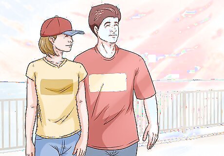 Go outside every day to get some sunlight and fresh air. Getting outside in nature is a natural mood booster, and even just going in your backyard or heading to the park can do the trick. Plus, sunlight will also boost your mood since it provides your body with vitamin D. Find something green, even if it's just a courtyard, to improve the effect.